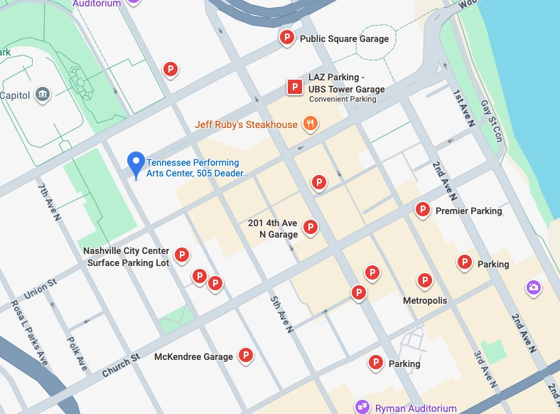 Note that traffic nearing Tennessee Performing Arts Center is often busier than normal around the time of popular events.Plan accordingly!
